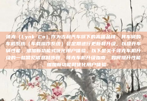领克(Lynk Co)作为吉利汽车旗下的高端品牌,其车辆的车机系统会定期进行更新和升级,以提升车辆性能、增加新功能或优化用户体验,车机系统是车辆智能化的重要组成部分,定期更新能够确保车辆功能的先进性和稳定性,领克的车机升级通常包括性能优化、功能扩展以及用户体验的提升,例如新增智能辅助驾驶功能、优化娱乐系统或增强人机交互体验,用户可以通过车辆的中控屏幕或手机APP接收到升级通知,并按照提示完成更新操作,在升级过程中,建议用户确保车辆电量充足、网络信号良好,并备份重要数据以避免信息丢失,定期更新车机系统不仅能够提升车辆的使用体验,还能确保车辆的安全性和功能性始终保持在最佳状态。