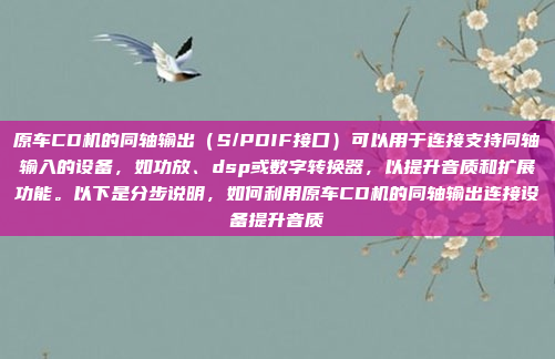原车CD机的同轴输出(S/PDIF接口)可用于连接支持同轴输入的设备,如功放、DSP或数字转换器,以提升音质和扩展功能,通过将同轴输出与外部设备连接,用户可以实现更高质量的音频传输和功能扩展,以下是操作步骤:准备所需的工具和线缆;断开车辆电源以确保安全;拆卸原车CD机并访问其S/PDIF接口;使用同轴线缆将CD机与目标设备连接;完成连接后,重新安装设备并恢复电源;测试系统以确保正常运行,此方法可有效提升音响系统的性能,建议在操作前熟悉车辆结构并采取必要的安全措施。