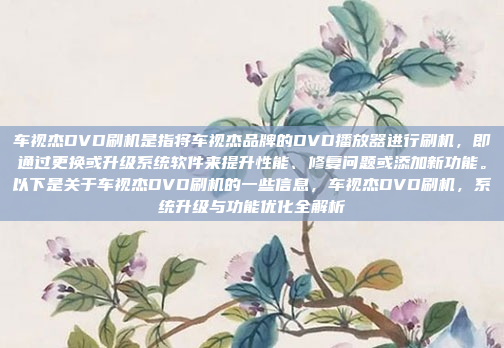 车视杰DVD刷机是指通过更换或升级系统软件,对车视杰品牌的DVD播放器进行性能优化、功能扩展或问题修复的过程,刷机可以提升设备的运行效率,修复系统漏洞,甚至添加更多实用功能,刷机操作具有一定风险,需谨慎操作,建议用户选择官方或经过验证的刷机包,避免使用来源不明的软件,以免导致设备损坏或数据丢失,在刷机前,应备份重要数据,并确保使用可靠的刷机工具,若对刷机操作不熟悉,建议联系专业技术人员或官方售后进行操作,以确保刷机过程顺利且设备稳定运行。