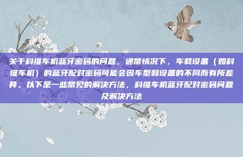 关于科维车机蓝牙密码的问题,通常情况下,车载设备(如科维车机)的蓝牙配对密码可能会因车型和设备的不同而有所差异,如果遇到蓝牙配对密码遗忘或无法连接的情况,建议首先查阅车辆的用户手册或设备说明书,以获取具体的配对密码信息,也可以尝试通过设备的蓝牙设置菜单中查找默认密码或重置选项,如果以上方法无法解决问题,建议联系科维车机的售后服务或技术支持,寻求进一步的帮助,通过这些方法,可以有效解决蓝牙配对密码相关的问题。