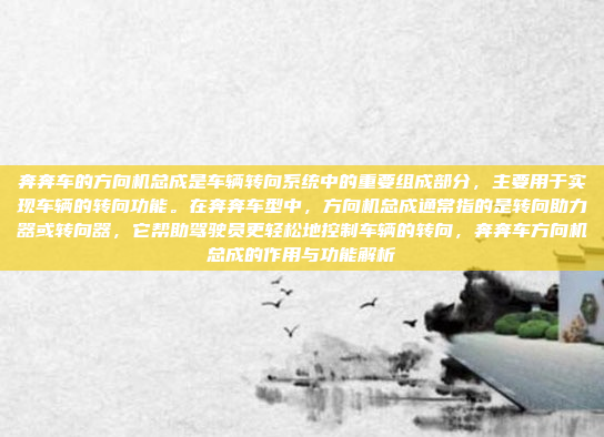 奔奔车的方向机总成是车辆转向系统中的关键部件,主要用于实现车辆的转向功能,它通常指的是转向助力器或转向器,能够帮助驾驶员更轻松地控制车辆的转向操作,在奔奔车型中,方向机总成通过提供助力或精确的转向控制,显著提升了驾驶的舒适性和操控性,这一系统不仅确保了车辆的转向更加灵活,还增强了驾驶的安全性和稳定性,方向机总成在奔奔车的转向系统中扮演着重要角色,对提升驾驶体验起着不可替代的作用。