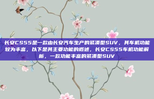 长安CS55是一款由长安汽车生产的紧凑型SUV,其车机功能丰富,为用户提供了智能化的驾乘体验,该车配备智能语音交互系统,支持多种语音指令操作,如调节空调、播放音乐等,极大提升了便利性,CS55的车机系统支持在线导航、实时路况查询以及丰富的娱乐功能,满足了用户在行车过程中的多样化需求,值得一提的是,该车还配备了远程控制功能,用户可通过手机APP实现车辆状态监控、远程启动等操作,进一步增强了车辆的智能化水平,车机系统还支持OTA升级,能够持续优化功能和性能,为用户带来更智能、更便捷的用车体验。