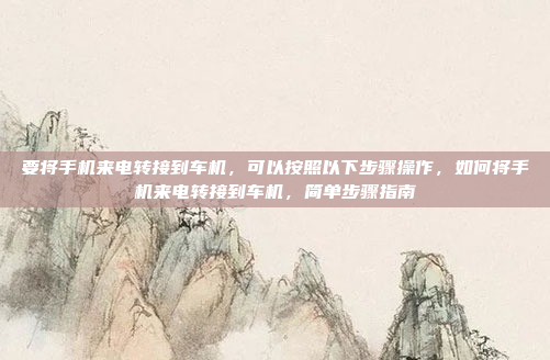 要将手机来电转接到车机,首先需要将手机与车机通过蓝牙或数据线连接,在手机的蓝牙设置中找到车机设备并配对,配对成功后,打开车机的蓝牙电话功能,并确保手机的蓝牙也处于开启状态,在车机的电话设置中选择“蓝牙电话”或类似选项,完成来电转接的设置,建议同步手机联系人到车机,以便在来电时显示完整的来电信息,完成以上步骤后,手机来电将自动转接到车机,您可以通过车机的扬声器或蓝牙耳机接听电话,在操作过程中,请确保蓝牙连接稳定,并注意行车安全。