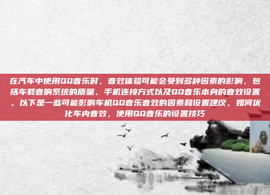 在汽车中使用QQ音乐时,音效体验可能受到车载音响系统质量、手机连接方式以及QQ音乐音效设置的影响,车载音响系统的硬件性能和音质直接影响音乐播放效果,手机与车载音响的连接方式(如蓝牙或AUX)可能影响音效的稳定性和延迟,QQ音乐本身的音效设置,如均衡器、环绕声模式等,也会影响音质表现,为了优化音效体验,建议选择高质量的车载音响系统,确保手机与音响的连接稳定,同时在QQ音乐中调整合适的音效模式和设置,定期更新软件和清理缓存也能提升整体听感。