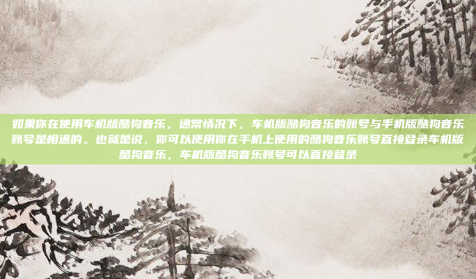 车机版酷狗音乐的账号与手机版酷狗音乐账号通常是相通的,这意味着用户可以使用在手机上已有的酷狗音乐账号,直接登录车机版酷狗音乐,无需额外注册或操作,这种账号互通的特性为用户提供了极大的便利,尤其是在音乐库同步、收藏夹管理以及使用记录等方面,能够实现无缝衔接,对于车主而言,这种账号互通功能不仅提升了使用体验,还让音乐播放更加便捷,满足了他们在不同场景下的多样化需求。