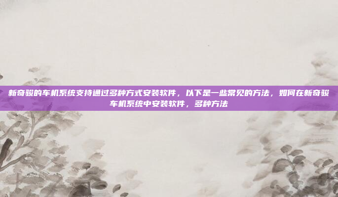 新奇骏的车机系统支持通过多种方式安装软件,为用户提供了极大的便利性,常见的安装方法包括通过USB连接设备将软件传输至车机系统,或者利用车载Wi-Fi功能在线下载和安装软件,部分软件还可以通过车机系统内置的应用商店进行下载和更新,操作简单直观,为了进一步提升用户体验,新奇骏的车机系统还支持OTA(Over-The-Air)在线升级功能,用户无需前往4S店即可完成系统和软件的更新,这些多样化的安装方式不仅提升了车辆的智能化水平,还为用户提供了更加便捷和个性化的使用体验,进一步增强了车辆的功能性和实用性。