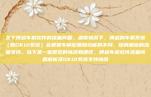 博越车机软件的流量问题通常与车辆配置和功能相关,不同车型和系统版本(如GKUI系统)会提供相应的流量支持,建议用户查阅车辆手册或咨询4S店,以了解具体的流量套餐和使用范围,用户可以通过车机系统设置查看流量使用情况,并确保网络连接正常,如遇网络问题,可尝试重启车机或联系售后服务,在进行OTA升级前,也需确保网络信号良好,以免影响升级过程。