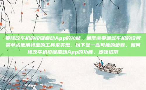 要修改车机的按键启动App的功能,通常需要通过车机的设置菜单或使用特定的工具来实现,以下是一些可能的步骤:进入车机的设置菜单,找到与按键功能相关的选项,在某些车型中,可能需要使用专门的诊断工具或软件来访问高级设置,找到按键功能分配选项,选择需要修改的按键,并将其与目标App关联,完成设置后,保存更改并重启车机以生效,需要注意的是,不同车型的操作步骤可能有所不同,建议参考车辆的用户手册或联系专业技术人员进行操作。