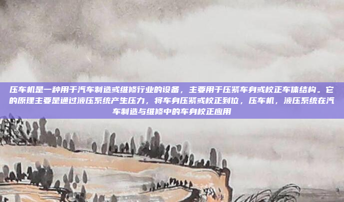 压车机是一种在汽车制造和维修行业中广泛应用的设备,主要用于压紧和校正车身结构,其工作原理基于液压系统,通过施加高压来确保车身的准确对齐和结构稳定性,这种设备在汽车制造过程中用于车身的压合,在维修过程中用于校正因碰撞或其他原因导致变形的车体结构,压车机的高效性和精确性使其成为汽车行业中不可或缺的工具,能够显著提升车身制造和修复的质量。