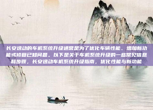长安逸动的车机系统升级旨在优化车辆性能、增加新功能或修复已知问题,升级前,建议车主确保车辆处于安全状态,断开外部设备,并备份重要数据,升级过程中,需保持车辆通电且系统连接稳定,避免中断操作,升级完成后,系统会自动重启,车主应检查新功能并测试车辆性能,定期更新车机系统有助于提升驾驶体验和车辆安全性。