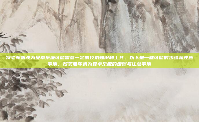 将老车机升级为安卓系统需要一定的技术知识和工具,需拆卸原车机并检查硬件是否兼容安卓系统,安装安卓系统并连接必要的硬件设备,如屏幕、喇叭和方向盘控制,随后,根据需求安装第三方软件,如CarPlay或Android Auto,以实现手机功能的无缝连接,完成安装后,需测试所有功能,确保无误,恢复车辆出厂设置,以确保系统正常运行,注意事项包括确保硬件兼容性、合理管理电源以避免过热、注意信号干扰问题,以及遵守相关法律法规,改装过程需谨慎操作,建议不具备技术能力的用户寻求专业人员帮助。