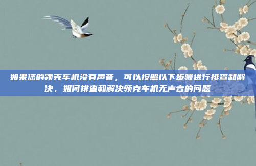 通过以上系统化的排查步骤,您可以有效解决车载系统无声音的问题,如果问题依然存在,建议及时寻求专业帮助,以确保车辆的正常运行和使用体验。