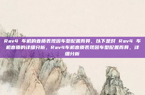 Rav4车机的音质表现因车型配置的不同而有所差异,基础配置车型的音质表现较为一般,音效较为单薄,低音和高音表现不够均衡,整体听感较为平淡,而高阶配置车型则采用了更好的音响系统,包括更多的扬声器和更先进的音频技术,能够提供更清晰、更丰富的音效表现,尤其是在低音和高音的还原上更加出色。,Rav4车机的音质还受到车内环境、扬声器布局以及软件调校的影响,部分用户反映,即使在高阶配置下,音质表现仍存在一定的提升空间,尤其是在复杂音乐或高动态音轨中,可能会出现音染或失真现象,通过后期升级音响系统或调整设置,可以进一步提升音质表现,满足对音效有更高要求的用户需求。