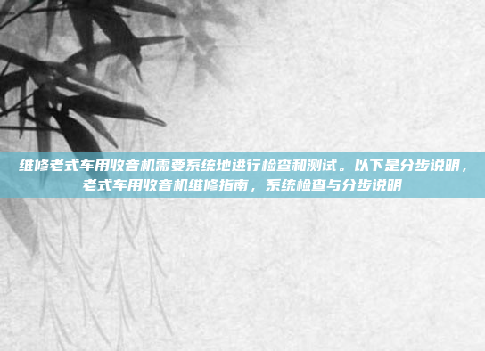 维修老式车用收音机需要系统地进行检查和测试,检查电源系统,确保电池或外部电源正常工作,测试收音机的天线和调频电路,确认信号接收是否正常,检查扬声器和功放电路,排除声音失真或无声的问题,如果发现元件老化或损坏,及时更换电阻、电容等关键部件,还需要校准收音机的频率和音量调节功能,确保其灵敏度和准确性,清洁设备表面和内部灰尘,确保散热良好,通过以上步骤,可以有效修复并延长老式车用收音机的使用寿命。