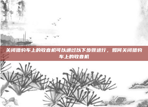 通过以上方法,您可以轻松关闭猎豹车的收音机,在进行任何操作前,请确保车辆已停稳并处于安全状态,定期维护车辆的电子设备,可以有效延长其使用寿命并确保最佳性能。