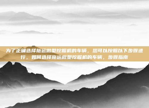 选择适合拖运微型挖掘机的车辆需要遵循以下步骤:确定微型挖掘机的重量和尺寸,以确保车辆和拖车的载重和空间足够,根据挖掘机的重量选择合适的拖车类型,如单轴或双轴拖车,确认车辆的牵引能力,确保其能够安全拖拽挖掘机和拖车的总重量,还需检查当地法规,确保符合车辆尺寸和重量的限制要求,选择可靠的品牌和车型,以保证车辆的耐用性和性能,通过这些步骤,您可以选择到适合拖运微型挖掘机的车辆,确保运输过程安全可靠。