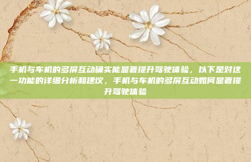 通过以上分析,您可以更好地利用手机与车机的多屏互动功能,享受更智能、安全的驾驶体验,同时根据个人需求进行个性化设置,提升日常用车的便利性。