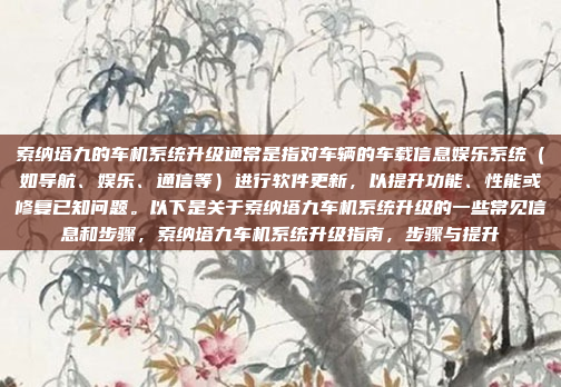 如果你对索纳塔九的车机系统升级有更具体的问题,或者需要进一步的帮助,请提供更多细节,我会尽力为你解答。