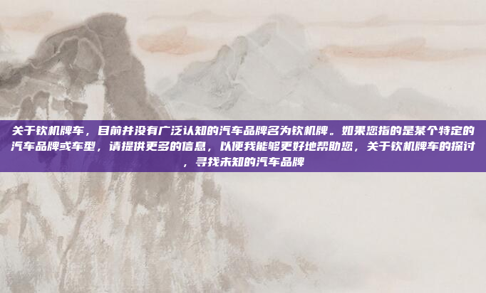 关于“钦机牌车”,目前并没有广泛认知的汽车品牌名为钦机牌,如果您指的是某个特定的汽车品牌或车型,请提供更多的信息,以便我能够更好地帮助您。