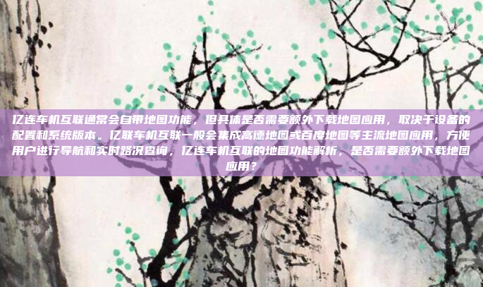 亿连车机互联通常自带地图功能,但是否需要额外下载地图应用取决于设备的配置和系统版本,亿联车机互联一般会集成高德地图或百度地图等主流地图应用,方便用户进行导航和实时路况查询。
