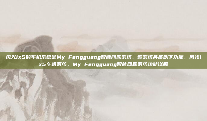 风光ix5的车机系统是My Fengguang智能网联系统,该系统集成了多项智能化功能,为用户提供了便捷、智能的驾驶体验,通过My Fengguang系统,用户可以实现语音控制、智能导航、娱乐影音、车辆状态监控等多种操作,进一步提升了车辆的科技感和实用性,系统支持与手机APP的无缝连接,用户可以通过手机远程控制车辆,查看车辆状态或进行定位,My Fengguang智能网联系统还支持OTA升级,能够持续优化功能和性能,为用户带来更智能、更贴心的用车体验。