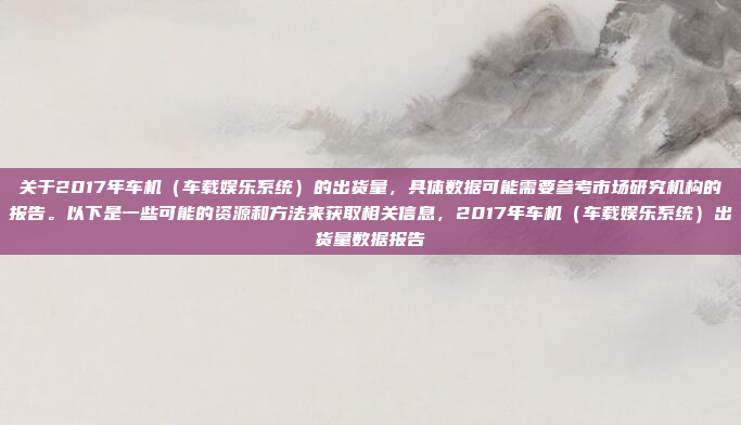 2017年车机(车载娱乐系统)的出货量数据可以通过市场研究机构的报告获取,具体数值可能在2000万台到3000万台之间,这些数据主要来源于知名市场研究机构,如IDC、Gartner、Forrester和Strategy Analytics等,车机系统作为汽车智能化的重要组成部分,其出货量反映了汽车电子市场的增长趋势,通过查阅行业报告、市场研究机构的官方网站或相关行业新闻,可以获取更详细的数据,车展、行业论坛和汽车制造商的财报也可能提供相关数据,这些信息对于分析车机市场的发展趋势和竞争格局具有重要意义。