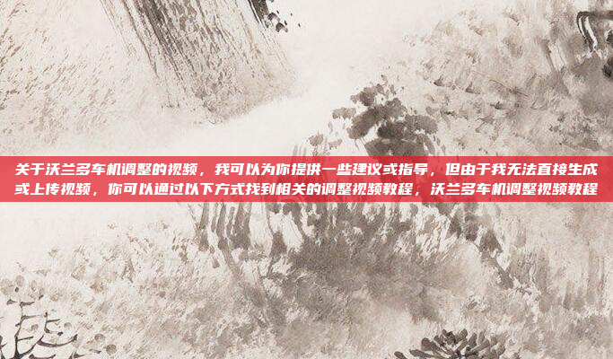 关于沃兰多车机调整的视频教程,我无法直接生成或上传视频,但我可以为你提供一些建议,帮助你找到相关的调整视频教程:,1. **在线视频平台**:你可以通过YouTube、B站等视频平台搜索“沃兰多车机调整”或“沃兰多车机设置”等关键词,找到相关的教程视频,这些平台上有许多汽车爱好者和专业技师分享的详细指导视频。,2. **品牌官网或4S店资源**:沃兰多的官方渠道(如官网或4S店)可能会提供一些关于车机调整的视频教程或指南,你可以访问品牌官网或联系当地4S店获取相关资源。,3. **汽车论坛和社区**:在一些汽车论坛或社区(如汽车之家、易车网等),许多车主会分享他们调整车机的经验,并附上视频教程链接,你可以搜索相关话题,找到适合你的调整方法。,4. **专业技师指导**:如果你对车机调整不太熟悉,建议联系专业的汽车维修技师或4S店的技术人员,他们可以为你提供详细的指导或演示视频。,如果你有具体的调整需求或问题,我可以为你提供更详细的建议或指导!