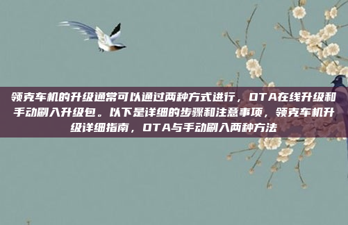 - 专业操作:手动刷入升级包需要一定的技术知识和操作经验,建议非专业用户联系领克4S店进行操作,以避免因操作不当导致系统损坏或数据丢失。