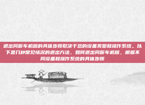 希望这些步骤能帮助您成功退出同听车机版,如果您在操作过程中遇到任何问题,欢迎提供更多设备信息,我们的技术支持团队将竭诚为您服务。