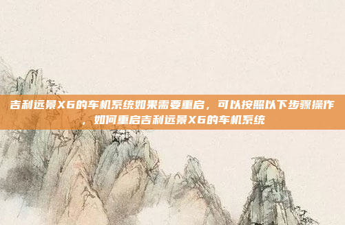 要重启吉利远景X6的车机系统,请确保车辆熄火且钥匙处于ON档,长按中控屏主菜单键约3秒,直到屏幕变黑,随后关闭电源总开关,等待30秒后重新打开电源总开关,系统将自动重启,重启后检查功能是否正常,如遇异常请联系4S店,操作时请注意安全,避免车辆移动或误触其他功能键。