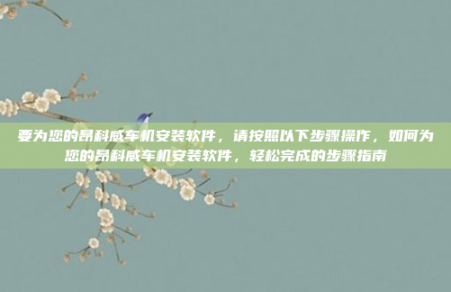 要为您的昂科威车机安装软件,请按照以下步骤操作:备份车机中的重要数据,以防止数据丢失,访问上汽通用官方网站下载最新版本的软件安装包,将下载好的安装包复制到USB设备中,并使用数据线将USB设备连接到车机的USB接口,确保安装驱动已正确安装,然后按照提示开始软件安装流程,安装完成后,断开电源并重启车机,确保所有功能正常运行,通过以上步骤,您可以轻松完成昂科威车机软件的安装。