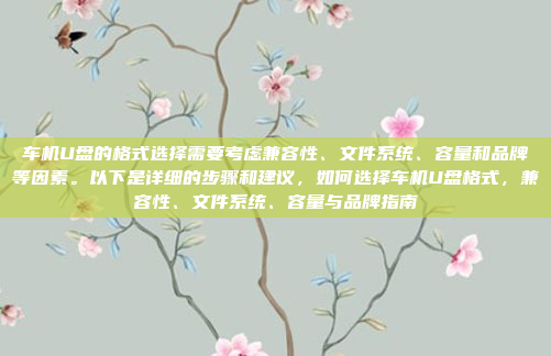 选择车机U盘时,需综合考虑兼容性、文件系统、容量和品牌等因素,确保U盘的文件系统与车机系统兼容,如FAT32或exFAT,以支持大容量文件和多格式媒体,选择知名品牌的U盘,以保证产品质量和稳定性,容量方面,根据存储需求选择合适大小,建议至少32GB以上,格式化前备份重要数据,使用系统自带工具或专业软件进行格式化操作,确保数据安全,综合以上因素,选择适合的车机U盘,可提升使用体验和设备稳定性。