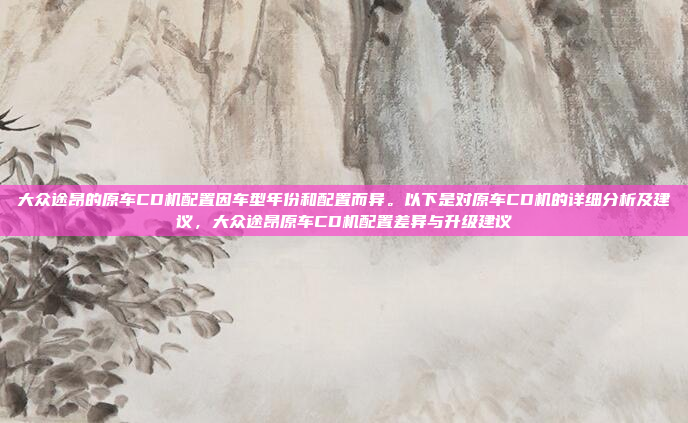 大众途昂的原车CD机配置因车型年份和配置的不同而有所差异,部分车型配备单碟或三碟CD机,而高配车型可能不配备原车CD机,转而采用其他娱乐系统,建议用户根据需求选择是否保留原车CD机或进行升级,若决定升级,可考虑更换支持更多功能的 aftermarket CD机,或直接安装更先进的 aftermarket 音响系统,同时保留原车功能。
