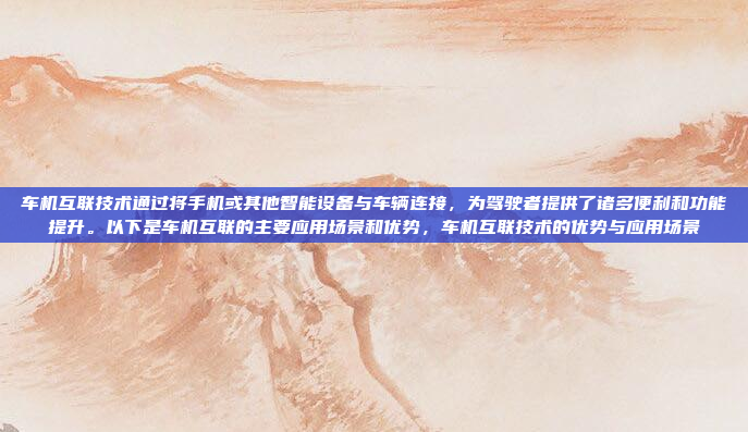 车机互联技术通过将手机或其他智能设备与车辆连接,为驾驶者提供了诸多便利和功能提升,该技术的主要应用场景包括导航、多媒体娱乐、车辆状态监控以及信息处理等,通过车机互联,驾驶者可以轻松访问手机中的地图、音乐、语音助手等功能,同时还能实现车辆的远程控制和状态查询,车机互联还能将手机上的通知和信息同步到车载屏幕上,减少驾驶过程中的分心,从而提高驾驶安全性,其优势在于操作便捷、功能丰富,能够显著提升驾驶体验和车辆使用效率。