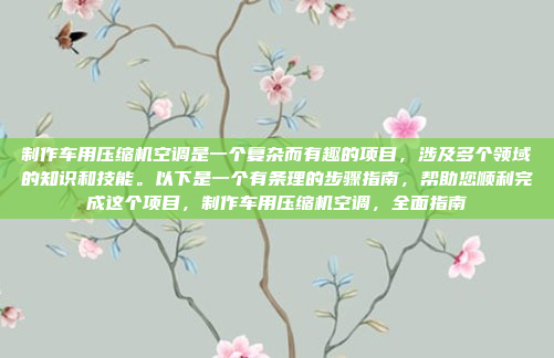 通过以上详细步骤,您可以系统地完成车用压缩机空调的制作,虽然整个过程涉及多个环节且技术要求较高,但只要按照步骤逐步实施,并不断积累经验,相信您能够顺利完成项目,祝您项目成功!如果在过程中遇到任何问题,欢迎随时交流讨论。