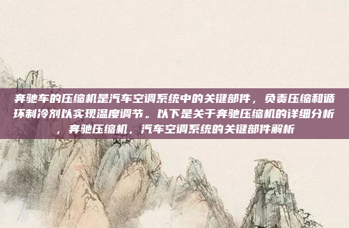 奔驰车的压缩机是汽车空调系统中的核心部件,负责压缩和循环制冷剂,以实现车内温度的调节,作为关键组件,压缩机的性能直接影响空调系统的效率和舒适性,奔驰压缩机通常采用先进的技术设计,以确保高效运行和耐用性,常见的压缩机类型包括斜盘式和摆式压缩机,每种类型都有其独特的优点和适用场景,压缩机的工作原理是通过压缩制冷剂气体,使其在系统中循环,从而吸收和散发热量,实现制冷或制热功能,压缩机也可能面临一些常见问题,如泄漏、磨损或性能下降,这些问题通常与空调系统的使用频率、维护情况以及环境条件有关,为了确保压缩机的长期可靠运行,建议定期进行空调系统的检查和维护,包括更换空调滤清器、检查制冷剂压力以及及时更换磨损部件。