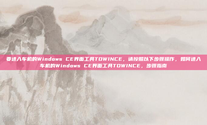 要进入车机的Windows CE界面工具TOWINCE,请按照以下步骤操作:,1. **确保车辆处于特定状态**:确认车辆已熄火,并拔出钥匙或移除点火装置,以确保系统处于安全模式。,2. **连接诊断工具**:使用专用的诊断工具或设备连接到车辆的诊断接口(如OBD-II端口),以进入维护模式。,3. **进入维护模式**:通过物理按钮(如方向盘上的功能键)或触摸屏操作,选择进入维护或诊断模式。,4. **启动TOWINCE工具**:在维护模式下,按照提示操作以启动TOWINCE界面工具。,5. **注意事项**:操作前请确保已备份重要数据,并参考车辆手册或专业指南以避免误操作。,通过以上步骤,您可以顺利进入TOWINCE界面,进行系统检查或维护操作。