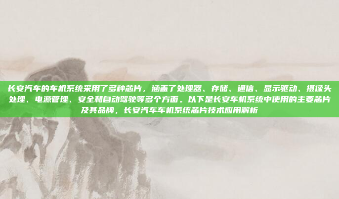 长安汽车的车机系统采用了多种芯片,涵盖处理器、存储、通信、显示驱动、摄像头处理、电源管理、安全和自动驾驶等多个领域,这些芯片来自全球知名半导体品牌,包括高通、三星、美光、博通、瑞萨、英飞凌、德州仪器和英伟达等,通过这些高性能芯片的协同工作,长安汽车的车机系统在智能化、安全性、驾驶体验等方面展现出强大的技术实力,体现了其在汽车智能化领域的创新与投入。