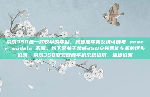 荣威350是一款较早推出的车型,其智能车机系统可能与 newer models 存在差异,以下是关于荣威350安装智能车机的逐步说明:准备所需的工具和材料,包括螺丝刀、新的智能车机设备、适配器(如有需要)等,拆卸车辆的内饰,露出原车的中控区域,断开原车的车机电源,拆卸原车机,并安装新的智能车机设备,确保新的车机与车辆的接口正确连接,并固定好位置,随后,重新安装车辆的内饰,确保安装牢固且不影响车辆的正常使用,测试智能车机的各项功能,确保其正常运行,在整个过程中,建议选择合适的适配器或咨询专业人士,以确保安装顺利进行。