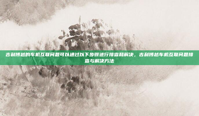 吉利博越的车机互联问题可以通过以下步骤进行排查和解决:检查车辆的系统和软件版本,确保已更新到最新版本;尝试重启车辆或车机系统,以排除临时故障;如果问题仍未解决,可以尝试恢复出厂设置或重置车机系统;检查手机或设备的蓝牙、Wi-Fi连接是否正常,确保与车辆的连接状态稳定;如果问题依旧,建议联系吉利4S店或官方客服寻求进一步的技术支持,通过以上步骤,可以有效排查并解决吉利博越的车机互联问题。