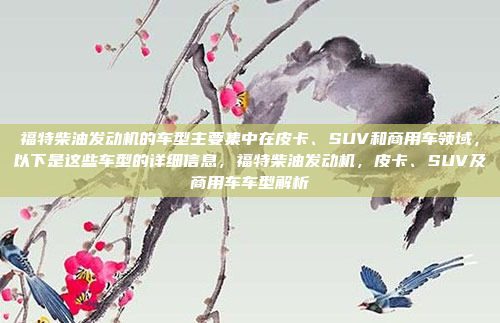 福特柴油发动机主要应用于皮卡、SUV和商用车领域,这些车型以其高效性能和耐用性著称,皮卡车型如F-系列,结合了强大的牵引力和可靠性,适合工作和休闲用途;SUV车型则注重舒适性和越野性能,满足家庭和户外需求;商用车辆则以高载货量和经济性为目标,适用于物流和运输行业,福特柴油发动机凭借其先进的技术,为这些车型提供了强劲动力和燃油效率,同时兼顾了低排放和环保要求,这些车型在市场中表现出色,成为消费者和企业用户的热门选择。