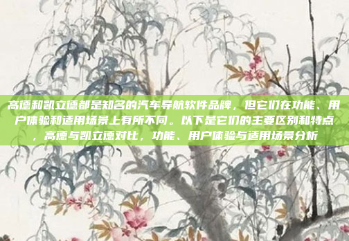 高德和凯立德是国内知名的汽车导航软件品牌,尽管都提供导航功能,但两者在功能定位、用户体验和适用场景上存在差异,高德导航以地图数据精准、实时路况更新和丰富的功能(如语音导航、躲避拥堵)著称,适合日常城市驾驶和短途出行,操作界面简洁易用,凯立德则更注重专业性和深度优化,提供详细的地图数据和离线导航功能,适合长途驾驶和复杂路况,尤其在偏远地区表现突出,凯立德还支持更多定制化功能,满足专业司机的需求,总体而言,高德偏向于便捷性和智能化,而凯立德则更注重专业性和稳定性,用户可根据自身需求选择适合的品牌。
