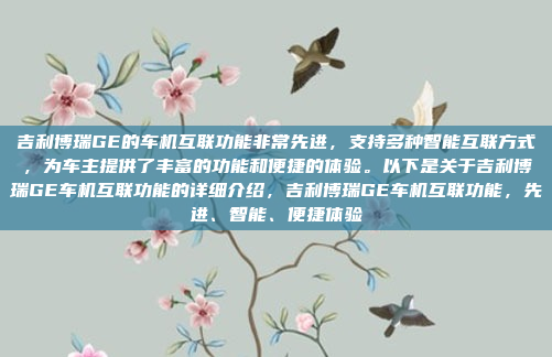 吉利博瑞GE的车机互联功能不仅强大而且多样化,涵盖了智能语音控制、远程控制、手机互联、智能导航、娱乐系统等多个方面,为用户提供了智能化、便捷化的驾驶体验,通过不断的技术升级和功能优化,博瑞GE的车机互联功能将继续为用户带来更智能、更安全、更舒适的驾驶体验,让科技真正服务于生活。