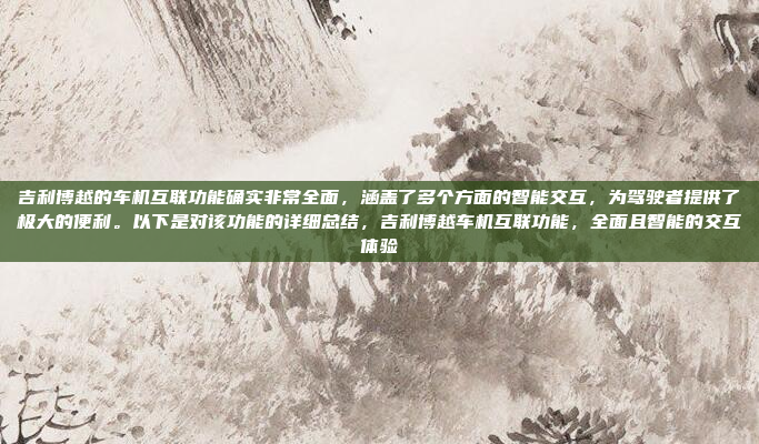 虽然功能配置丰富,但实际体验可能因不同车型的年份和配置差异而有所区别,建议用户在购买前详细了解具体车型的配置信息,并参考真实用户的使用反馈和专业评测,以获得更全面的了解,总体而言,吉利博越的车机互联功能在智能化和便利性方面表现优异,为用户带来了更加舒适和安全的驾驶体验。