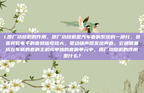 需要注意的是,原厂功放机通常与车辆的保修政策相关联,未经授权的改装可能会影响车辆的保修服务,在进行任何改装之前,建议您仔细阅读车辆的保修条款,并权衡利弊,如果您对改装过程或选型有任何疑问,欢迎随时提供更多细节,我将尽力为您解答。