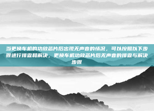 更换车机功放芯片后出现无声音的情况,可以按照以下步骤进行排查和解决:首先检查功放芯片的供电是否正常,包括保险丝、电源电压和极性是否正确,确认信号输入是否正常,检查输入端是否有信号输入,信号线连接是否牢固,检查功放芯片的配置是否正确,确保没有因配置错误导致静音或输出关闭,检查接地是否良好,避免因接地不良导致的干扰,检查电源滤波和信号源是否正常,确保没有因电源干扰或信号源问题导致无声音,如果以上步骤仍无法解决问题,可进一步检查功放芯片的硬件或软件设置是否正确。