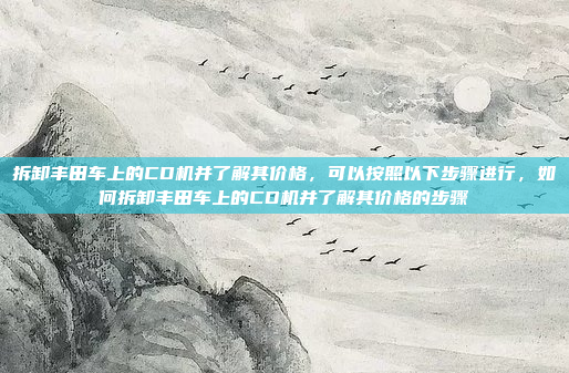 拆卸丰田车上的CD机并了解其价格,可以按照以下步骤进行:断开车辆的电源,以确保安全,拆卸车辆的内饰,包括仪表板和中控台,以便接触到CD机,断开CD机的连接线,并拆卸固定CD机的螺丝,取下CD机,关于价格,丰田CD机的价格因车型和年份不同而有所差异,通常在几百元到一千多元之间,如果需要更换CD机,建议购买与车辆匹配的原厂或 aftermarket 产品,拆卸过程中如不确定操作,建议寻求专业人员帮助,以避免损坏车辆或设备。