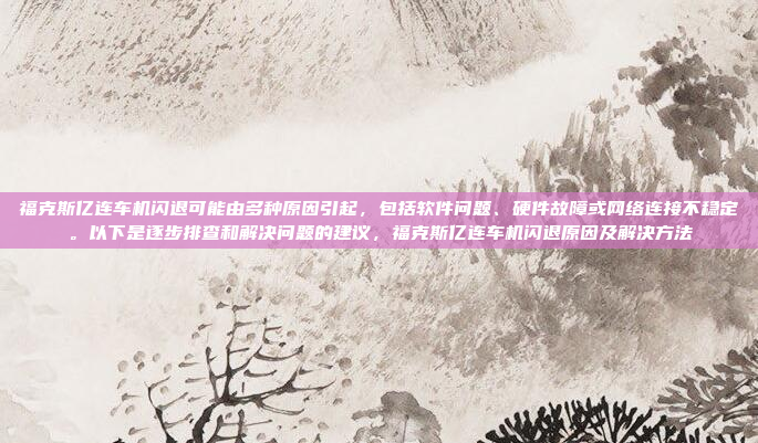 通过以上步骤,您可以系统地排查和解决福克斯亿连车机闪退的问题,如果问题依然存在,及时寻求专业帮助是关键,以确保驾驶安全和最佳体验,建议定期对车机系统进行维护和更新,以预防类似问题的发生。