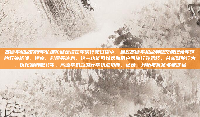 高德车机版的行车轨迹功能是一项通过车辆导航系统记录行驶路线、速度和时间等信息的实用功能,该功能在车辆行驶过程中实时采集数据,帮助用户回放行驶路径,分析驾驶行为,优化路线规划,通过这一功能,用户可以更好地了解自己的驾驶习惯,提升驾驶效率,同时为未来的出行提供更精准的参考。