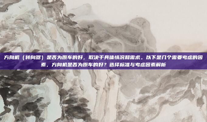 方向机(转向器)是否为原车的好,取决于具体情况和需求,以下是几个需要考虑的因素:,1. **匹配度与性能**:原车方向机经过严格测试,与车辆匹配度高,性能稳定,可靠性强,适合追求安全性和操控性的用户。,2. **保修与维护**:原车方向机通常享有厂商保修,维修服务更方便,减少后期维护成本。,3. **价格与预算**: aftermarket方向机价格较低,适合预算有限的用户,但质量和耐用性可能不如原厂件。,4. **个性化需求**:如果追求个性化改装或特殊功能,可以选择 aftermarket方向机,但需注意匹配性和安装难度。,5. **驾驶习惯与路况**:根据个人驾驶习惯和常行驶路况,选择适合的方向机,以提升驾驶体验和安全性。,选择方向机时需综合考虑车辆性能、预算、维护便利性及个性化需求,以做出最适合的选择。